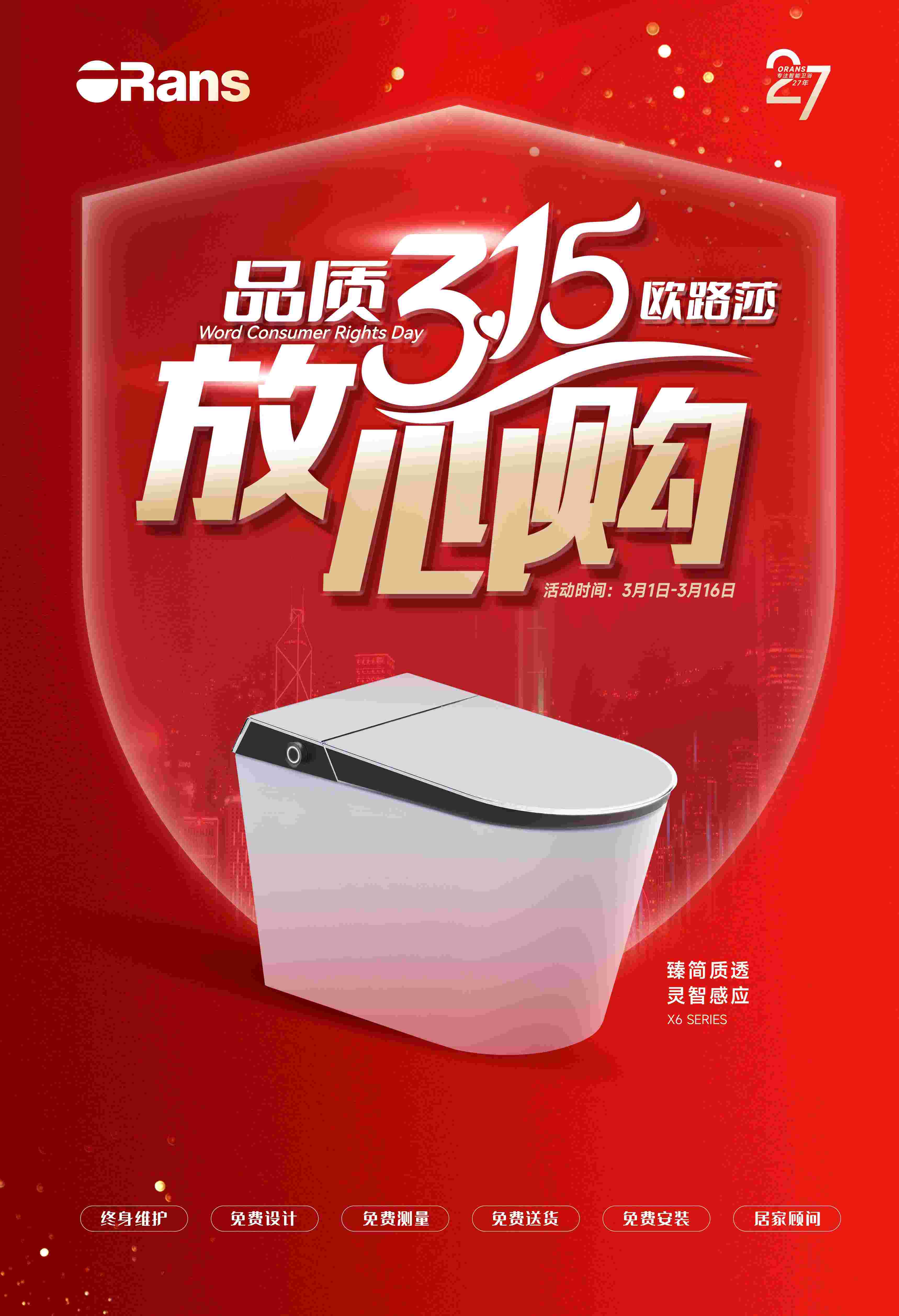 伴著和煦的春風,乘著國補的東風!3月1日至3月16日,歐路莎衛浴“品質315,衛浴放心購”全國煥新活動正式啟動!