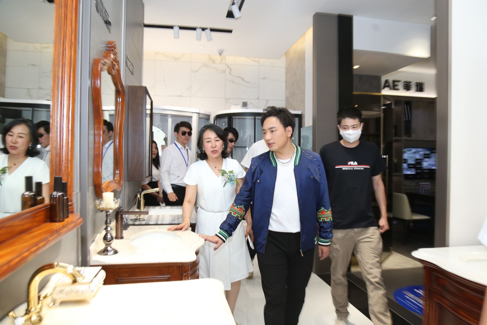 逛店過(guò)程中,歐路莎衛(wèi)浴鄂爾多斯總經(jīng)理米彩霞為海來(lái)阿木和現(xiàn)場(chǎng)消費(fèi)者推介歐路莎全線潮流新品。