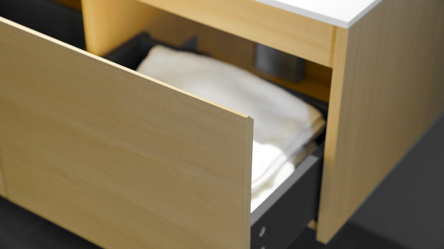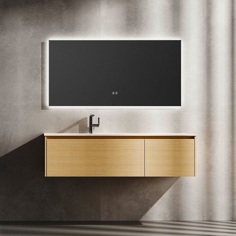 隱藏式大雙抽,科學(xué)引導(dǎo)合理的收納,方形智能鏡設(shè)計(jì),超大鏡面內(nèi)嵌暖色燈帶,讓空間在視覺上更加開闊