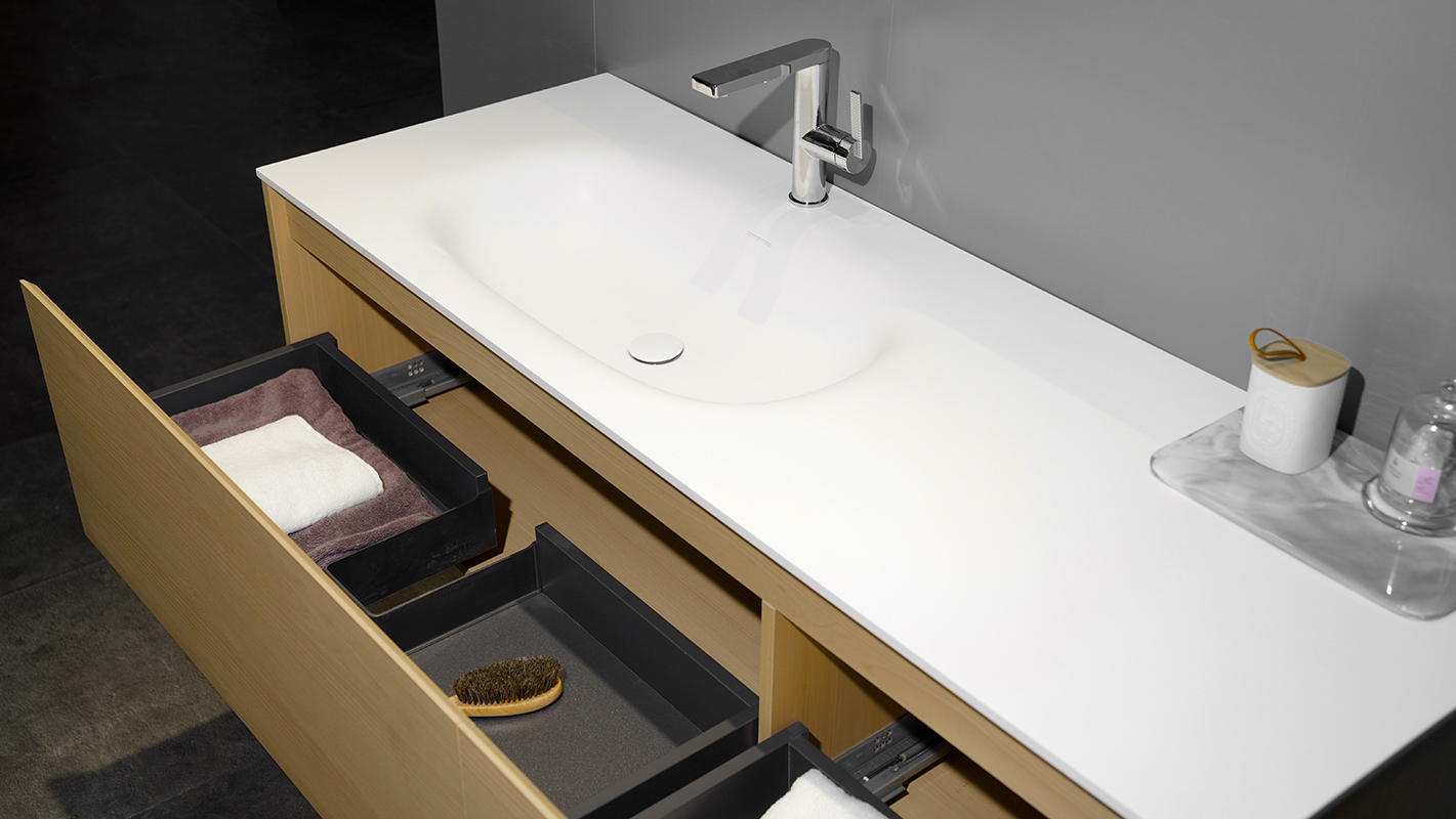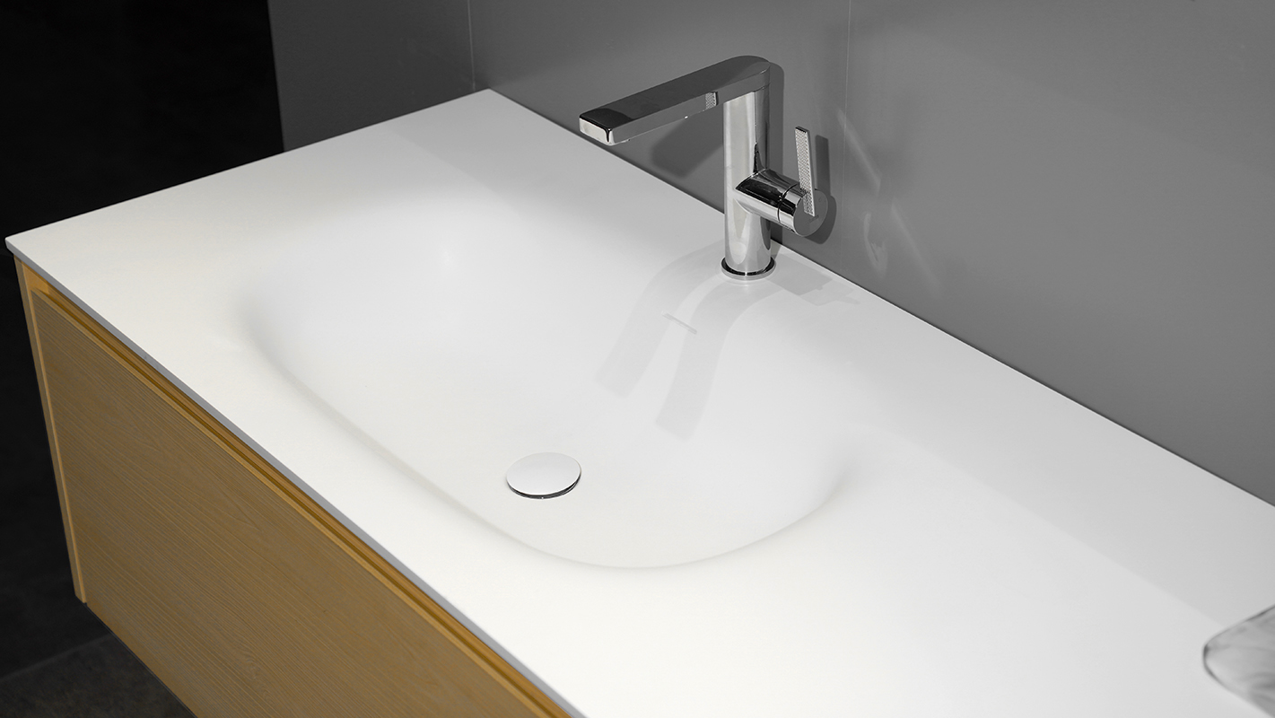 可麗耐一體臺(tái)盆,細(xì)膩溫潤的觸感,勾勒靈動(dòng)純凈之美,極簡臺(tái)面設(shè)計(jì), 減少整體的厚重感