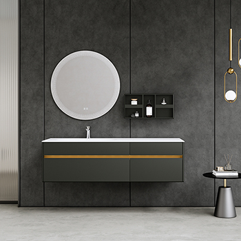 材質:白色可麗耐一體盆/銀煙霧柜體/智能鏡/多層實木