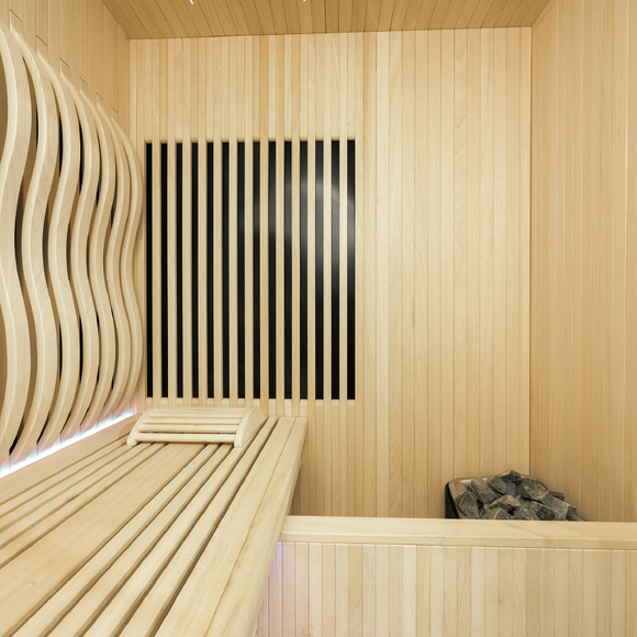 雙彩屏觸控智能系統(tǒng)(含藍(lán)牙音樂(lè)、收音、臭氧消毒、智能APP等)、遠(yuǎn)紅外汗蒸系統(tǒng)衣掛、坐凳、彩色氛圍燈系統(tǒng)、一體式發(fā)熱板、底部防撞夜燈、靠背、造景墻、置物板、枕頭、躺位臀部加熱系統(tǒng)(可單獨(dú)控制) 、 沙漏、度計(jì)、木桶、木勺、桑拿石、6.0KW干蒸爐。