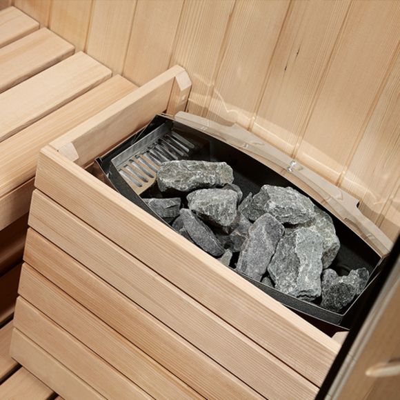芬蘭哈維亞桑拿爐、暖光方燈、夢幻彩燈靠背、觸控系統(含FM收音、藍牙音樂、智能童鎖、臭氧消毒)、沙漏、桑拿石、木桶、木勺、干蒸爐護欄、雕花門。