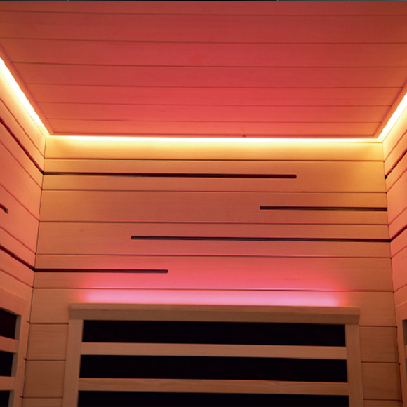 遠紅外汗蒸系統(背部、肩部、腳底)、環繞暖光頂燈、暖光坐凳氛圍燈、背部上圈夢幻彩燈、觸控系統(含臭氧殺菌、藍牙、收音、MP3)、高保真共振音樂系統。