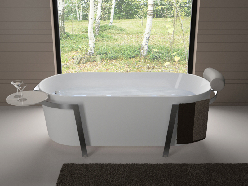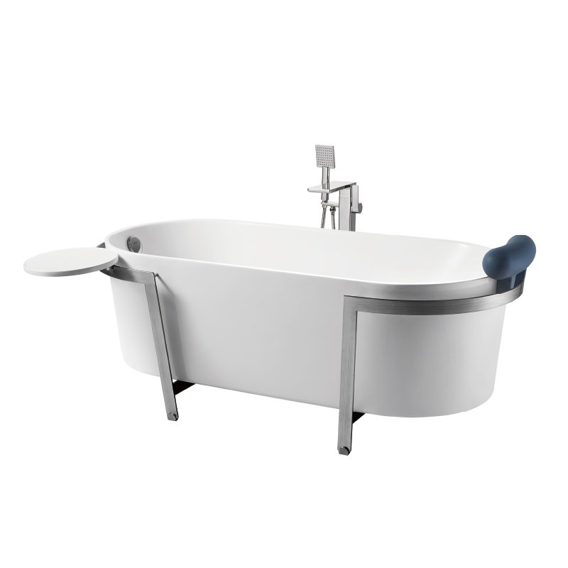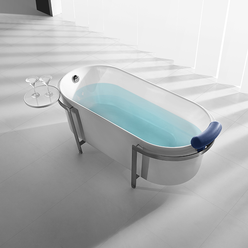 橢圓形缸體由對稱設計的不銹鋼支架穩穩托起,同時與地面保留適當間距,超強空間層次感與金屬襯托藝術感升級。