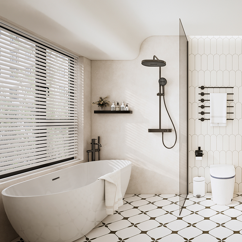 流暢的圓弧巖壁設計,一體無縫工藝,可自由搭配外接式品質龍頭,花灑,簡約時尚,百搭浴室風。