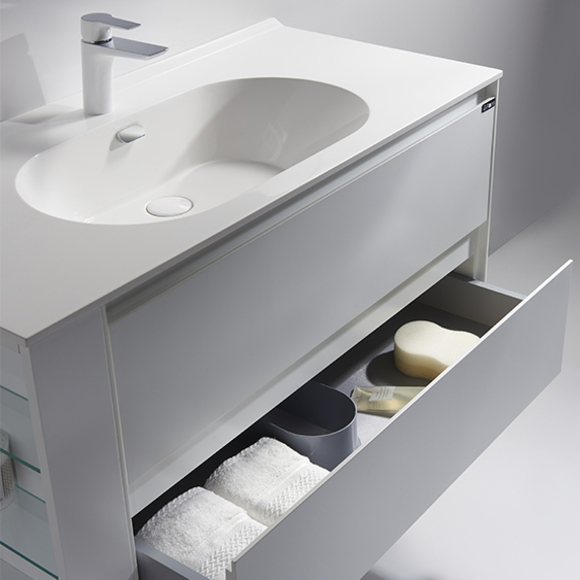 從整體到局部,浴室柜每一個細節都精雕細琢,簡約精致。