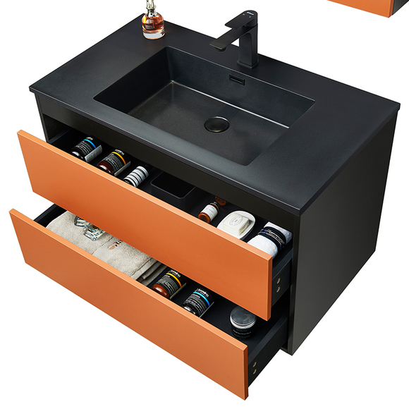 巖灰的層次感,打破純黑的沉悶,鮮亮活潑的落漫妃,調和深色的沉郁,明與暗的強烈對比,碰撞出衛浴空間的活力與溫馨。