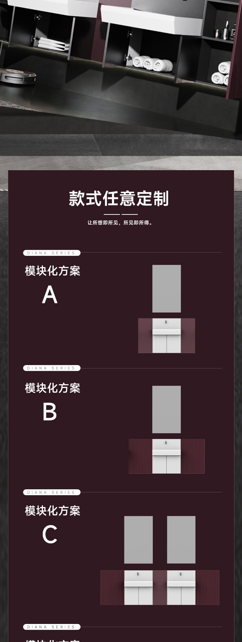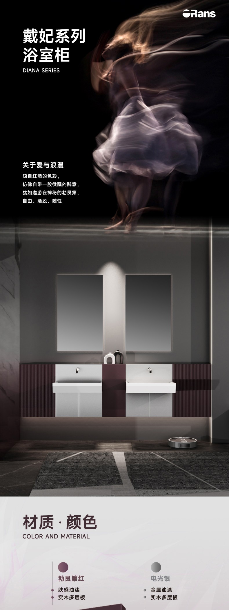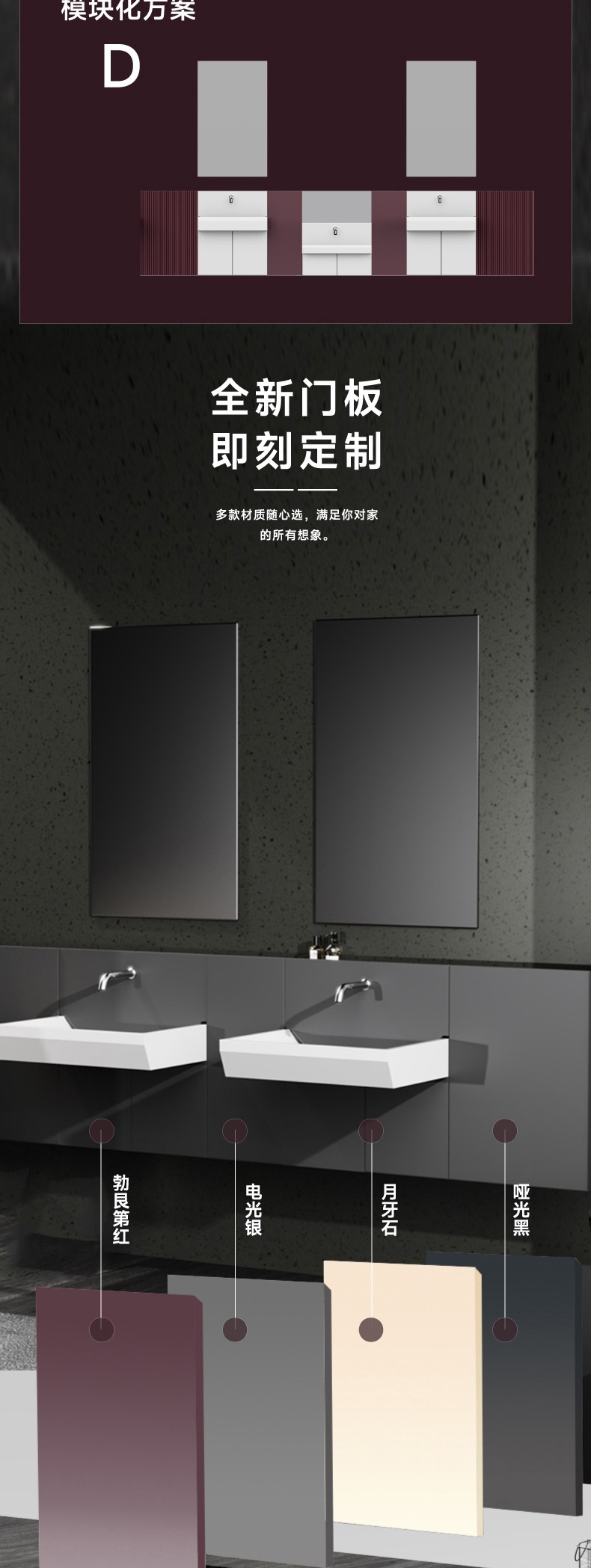 主柜顏色:勃艮第紅/電光銀 臺盆顏色:膚感白 材 質(zhì):多層板/奇美石/智能鏡 安裝方式:掛壁安裝